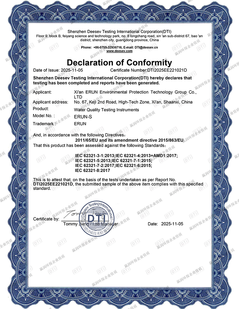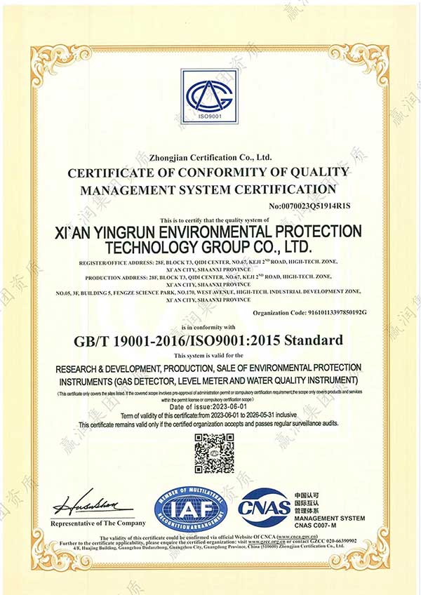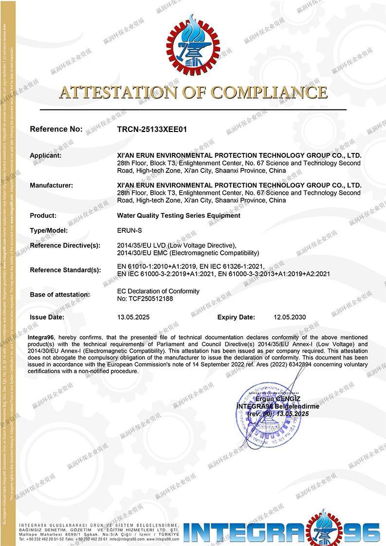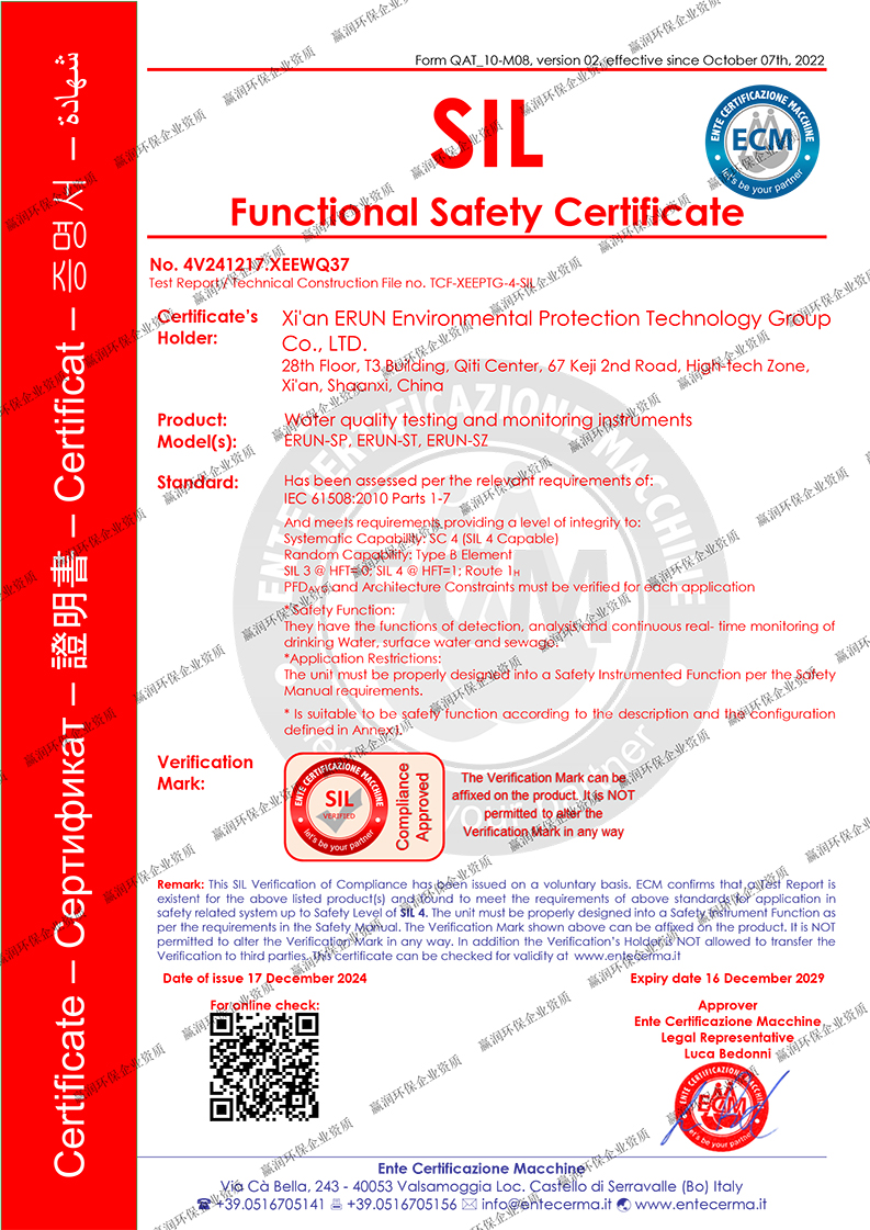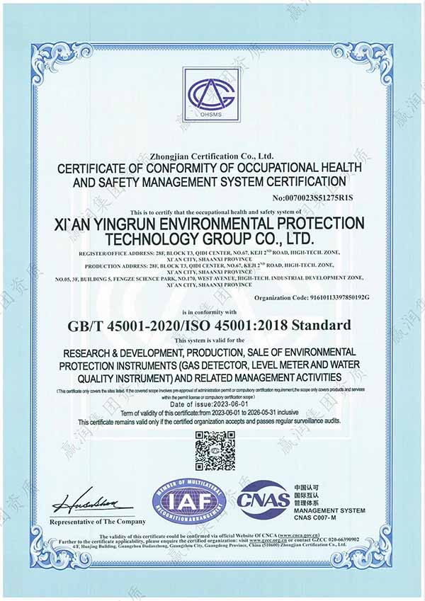 贏潤集團憑借深厚的技術積淀與持續的創新能力,已累計獲得授權專利100余項、軟件著作權90余項,主導并參與多項行業標準的制定工作。在資質體系建設方面,集團已取得ISO9001質量管理體系、ISO14001環境管理體系、ISO45001職業健康安全管理體系認證,旗下水質檢測產品還榮獲CE認證、SIL4認證、RoHS認證,并獲得UN38.3檢測報告及海運、空運相關證書,具備服務全球市場的合規能力。