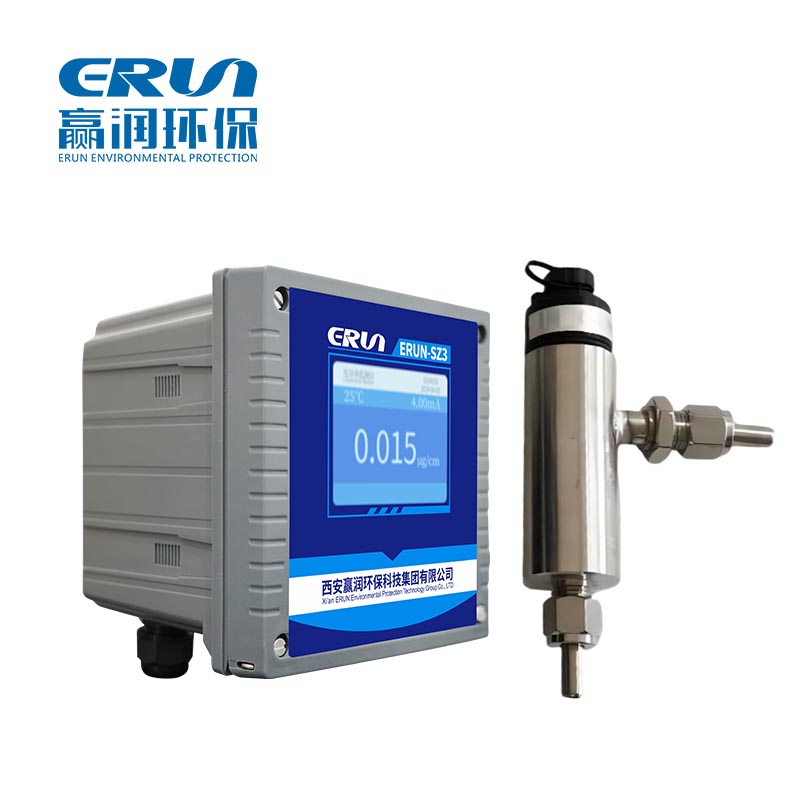 贏潤環保自主研發的ERUN-SZ4-K3水質臭氧在線監測分析儀器采用覆膜式數字消毒劑傳感技術,傳感器內部以高純度金電極作為核心工作電極,構成穩定可靠的三電極測量體系。水中臭氧濃度監測傳感器集成高精度恒電位控制模塊,可持續保持工作電極電勢恒定,使水體中的臭氧等消毒劑成分在電極表面發生可控的氧化還原反應。反應過程中產生的電流信號嚴格符合電化學法拉第定律,在線式電極法水質臭氧分析設備通過對電流變化的精確解析,實現對水中消毒劑濃度的連續、準確測量。